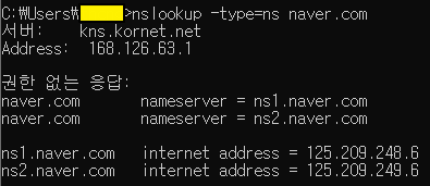 nslookup -type=ns 도메인명