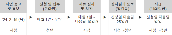 - 신청기간: 2024. 3. 1.(금) ~ 11. 30.(토) ※ 예산 소진시 조기종료
