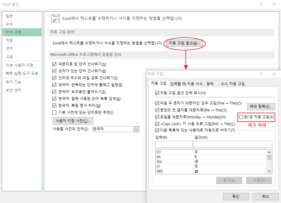 영어 대문자로 약어를 쓰는 경우가 많이 있는데, 한글로 자동으로 변화되서 번거로울때가 많다