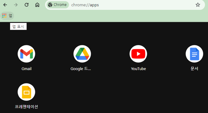 참고> [앱 표시] 버튼은 북마크 바에 마우스 오른쪽 클릭을 해서 표시 여부를 정할 수 있습니다.