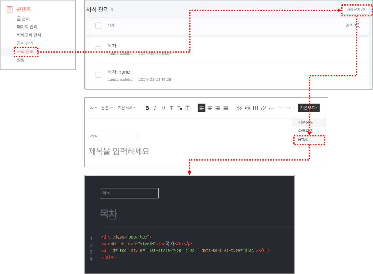 - [ 관리자 화면 → 콘텐츠 → 서식 관리 → 서식 쓰기 ] 로 들어가서 html 모드로 바꾼 후 [서식 제목]을 입력하고, 위의 코드를 추가합니다