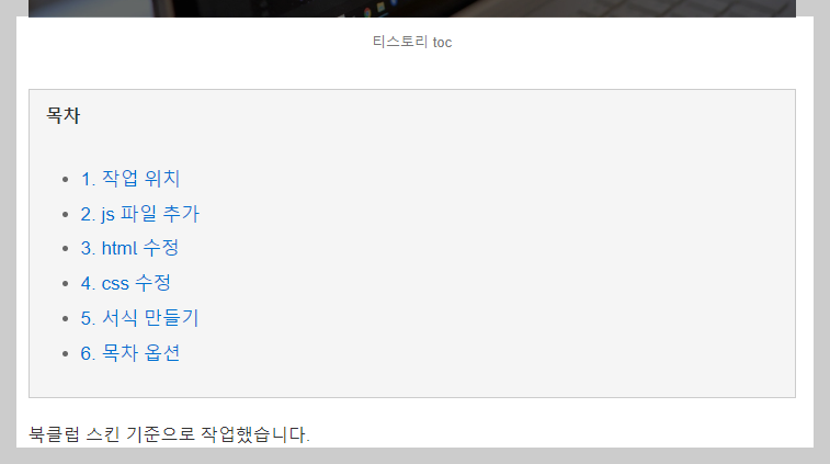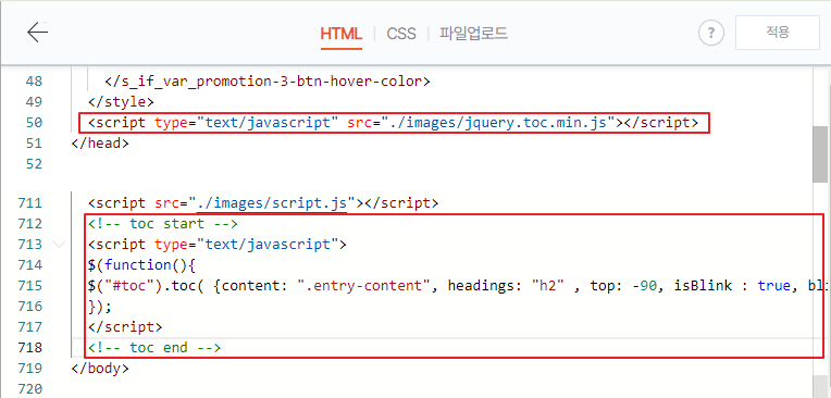 (여기선 jquery.toc.min.js로 사용했습니다.)