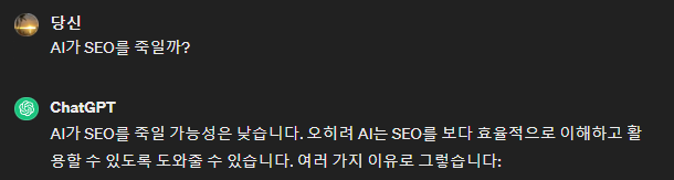 ChatGPT 자체에게 AI가 SEO를 죽일 것인지 물었을 때, 그것의 응답은 명확했습니다. AI는 인간의 손길이 부족합니다. SEO 전략을 대체하기보다는 AI가 그것들을 강화합니다. 아래 그 설명들이 있습니다.