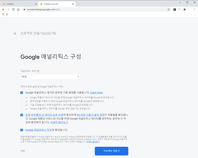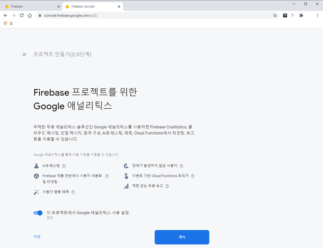 ※ firebase 프로젝트 만드는 화면을 순서대로 정리